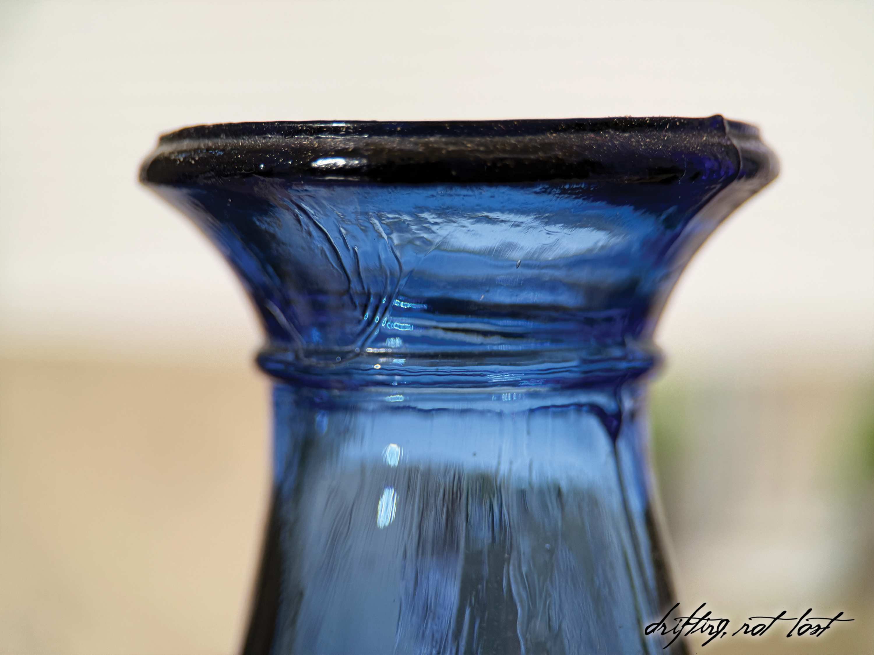 Each piece of driftwood is ethically sourced and naturally shaped by years of ocean tides, then carefully selected and positioned to cradle the vase in a way that feels both sculptural and spontaneous. The vase itself—an authentic antique with a subtle blue tint—adds a touch of old-world charm and can be used to display fresh florals, dried botanicals, or left empty as a statement art object.