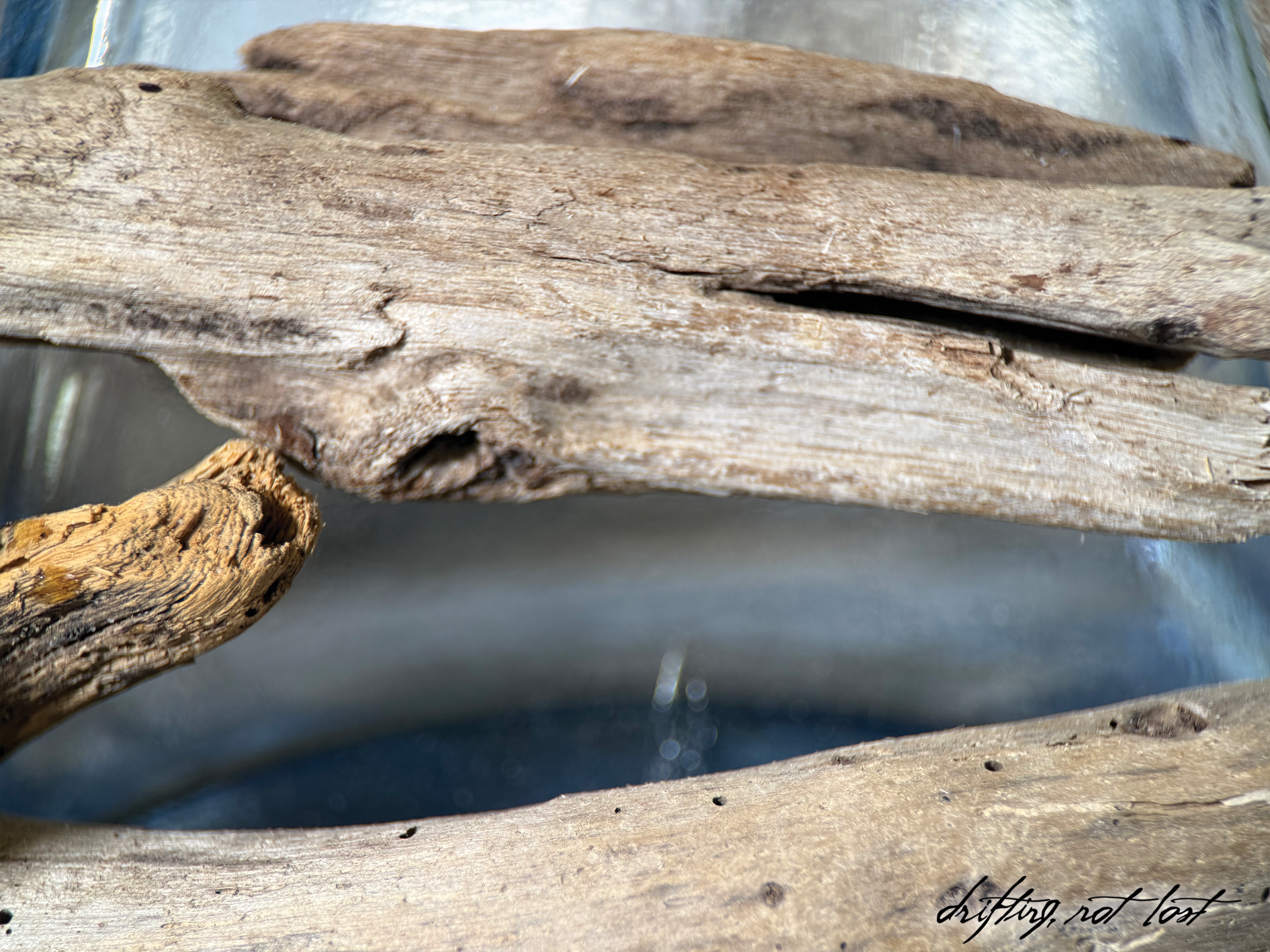 Materials: Natural driftwood, antique glass (circa early 20th century)